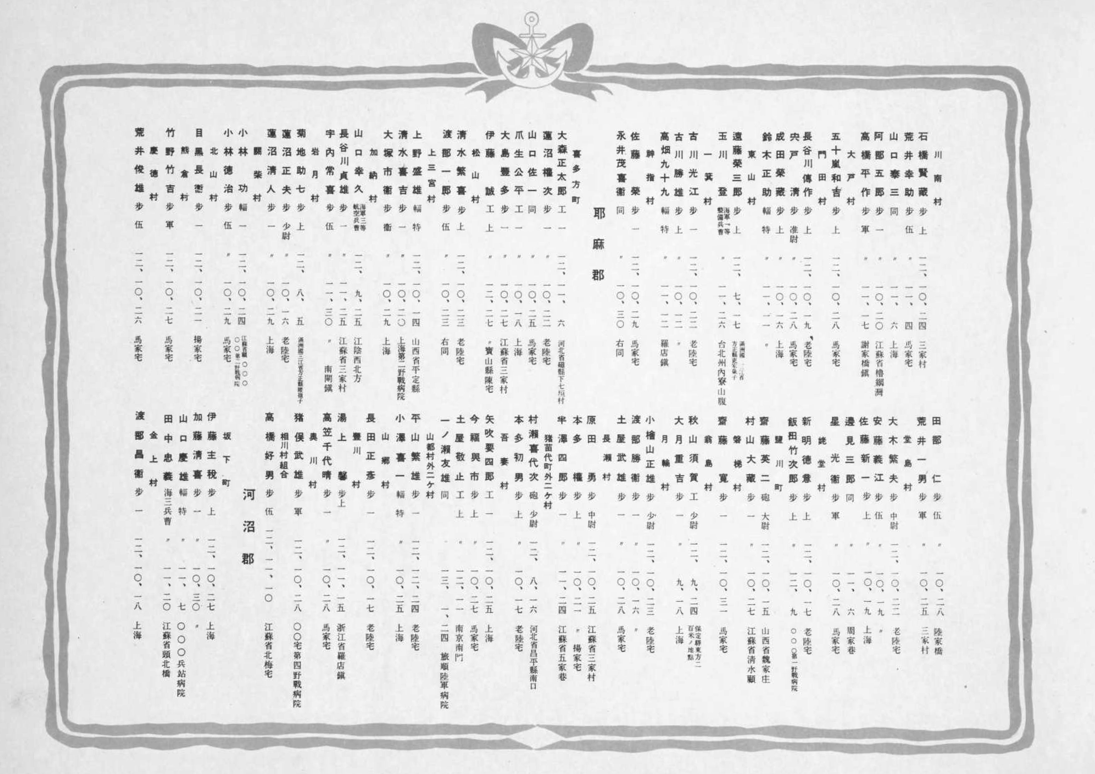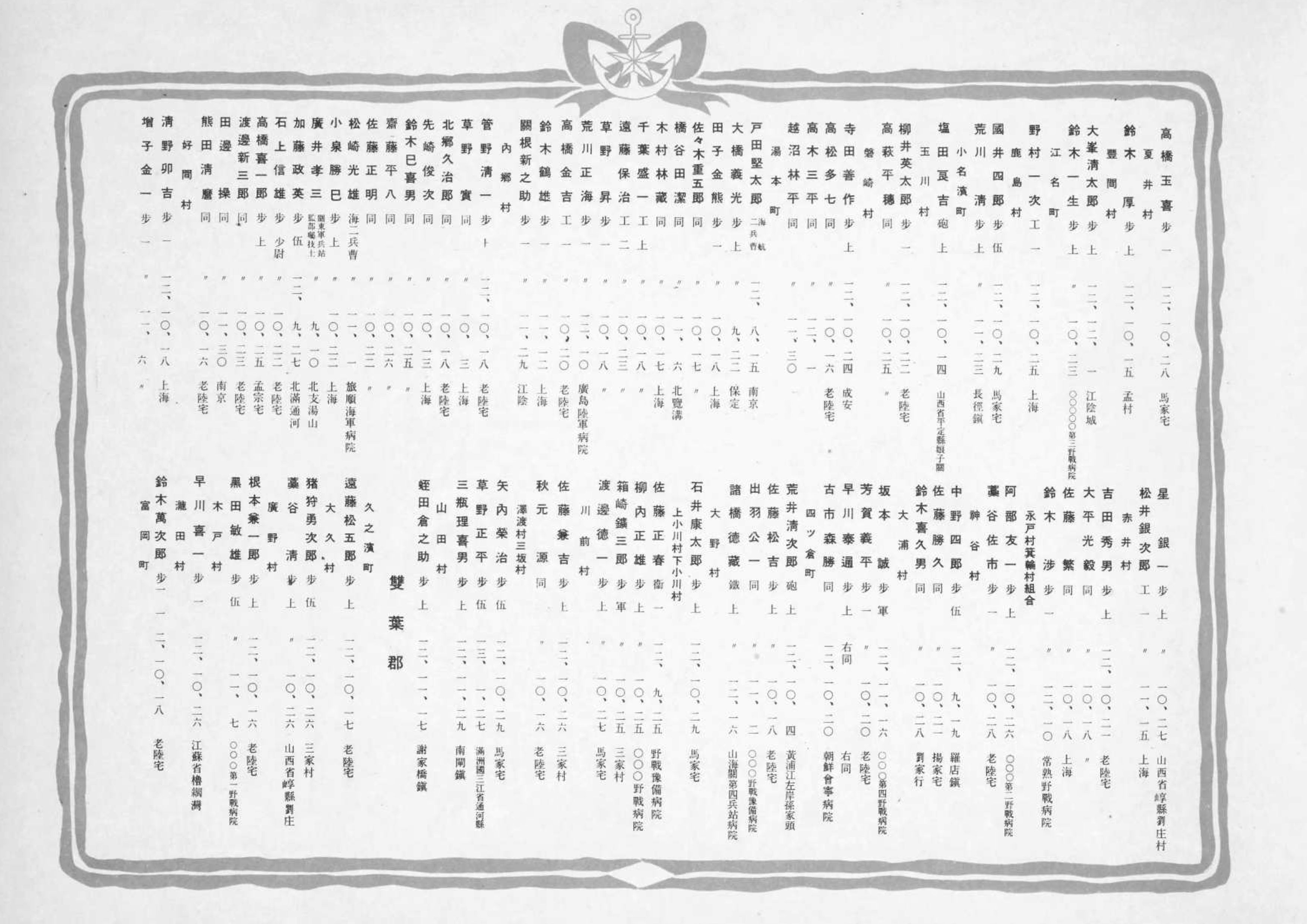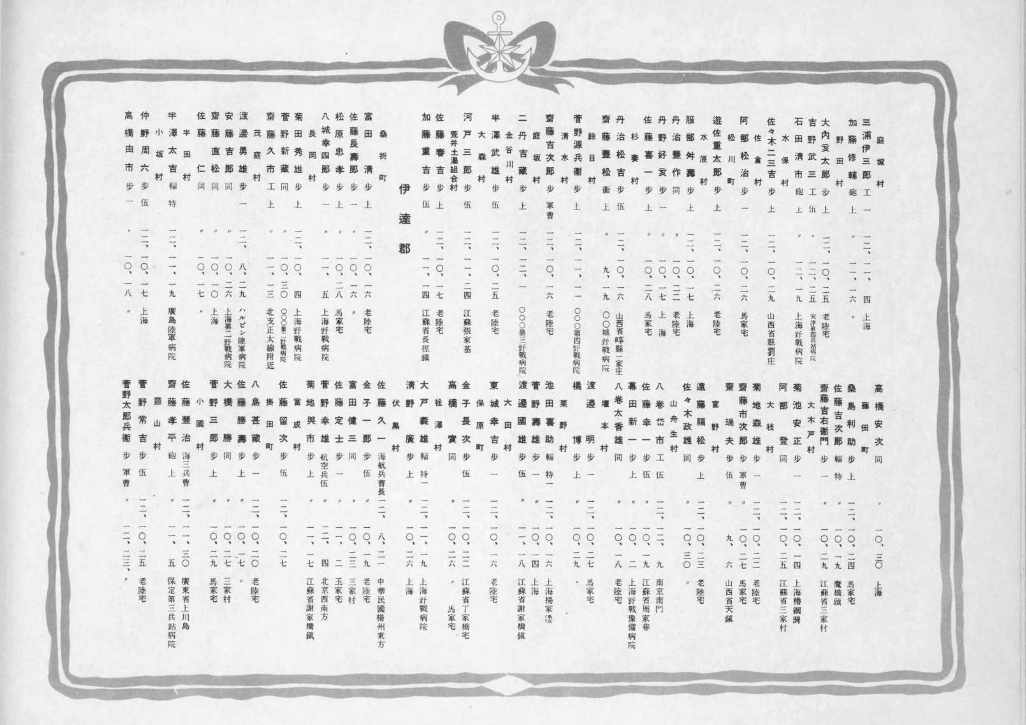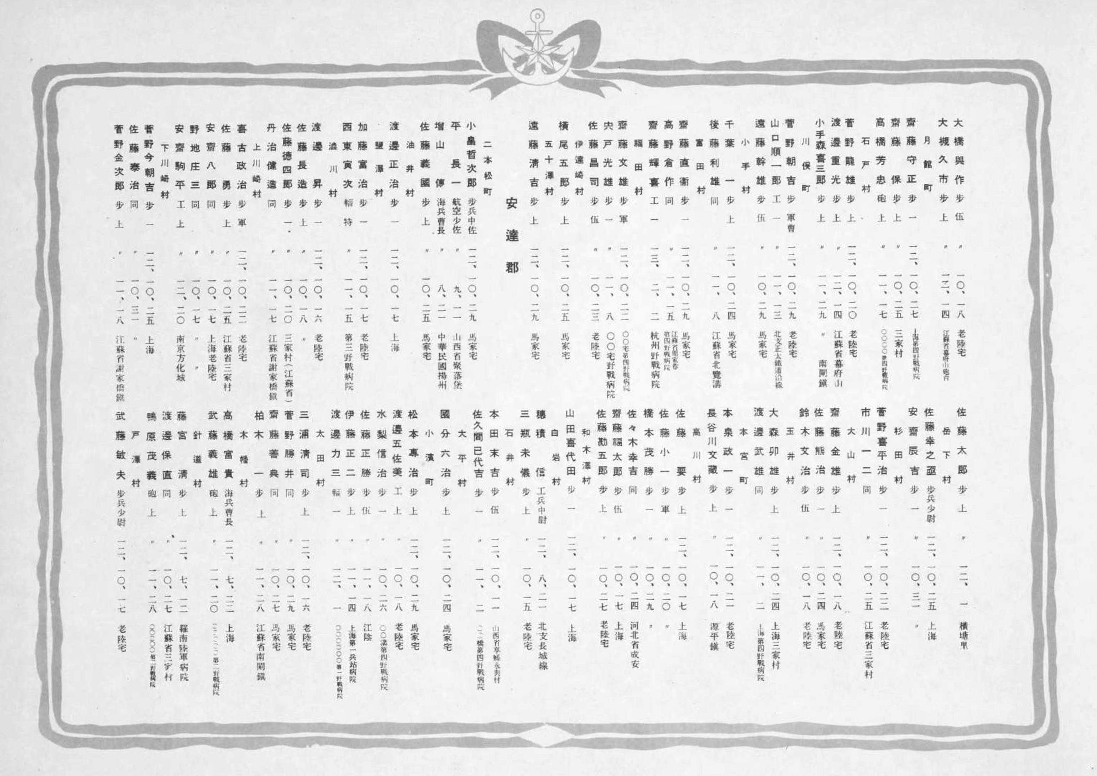 福島県戦死者名簿(1937年11月〜1938年4月)