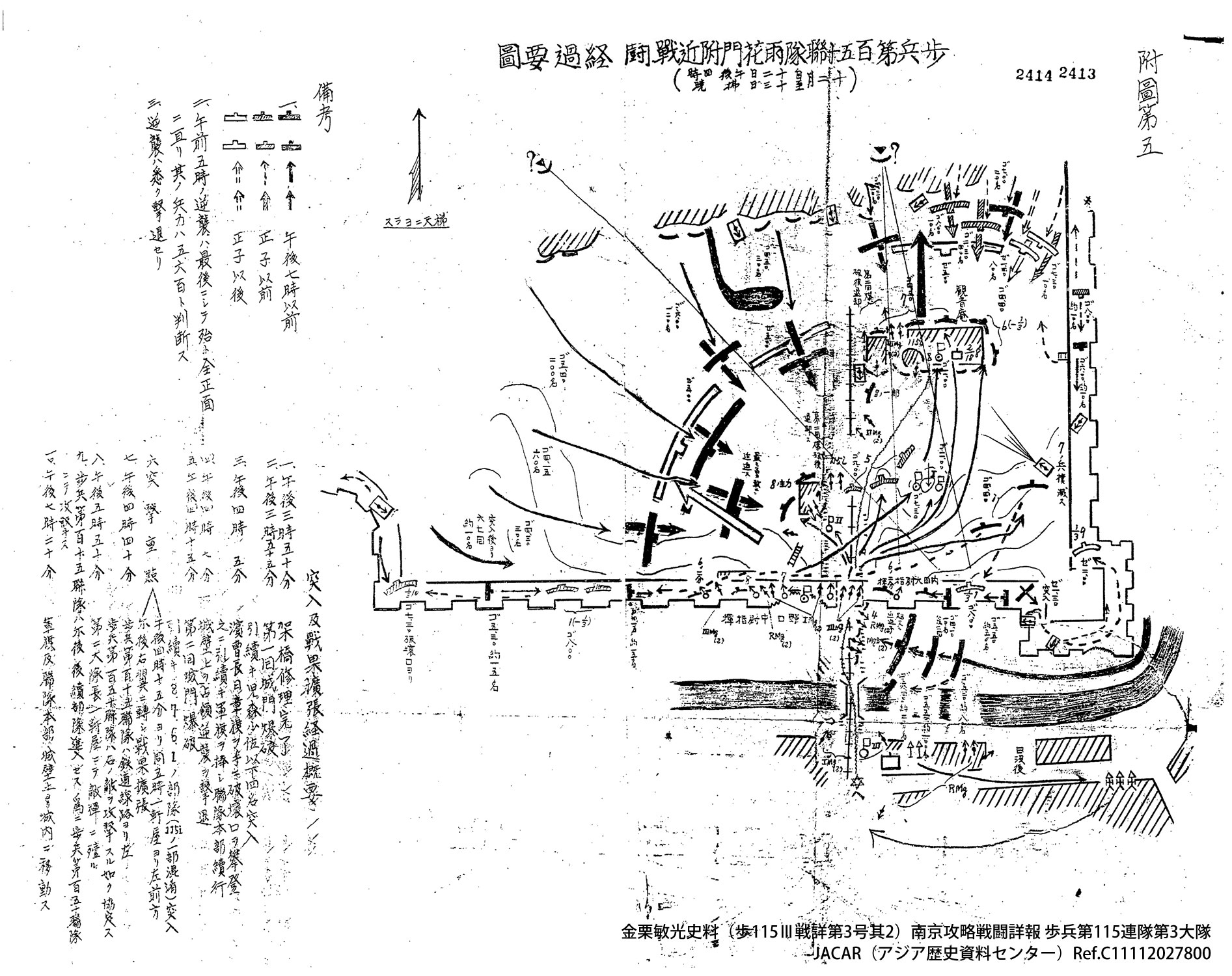この作戦命令から、第114師団は12月12日の攻撃で城門・城壁の破壊・占領が出来ずに、「南京南門東南高地」で野営することになっている。