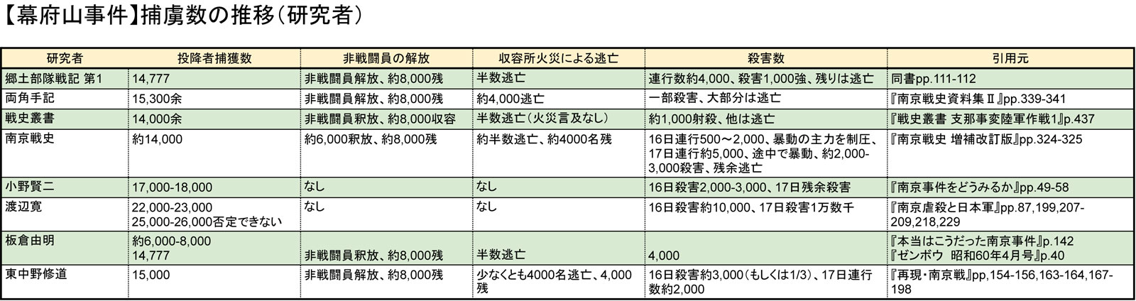 本稿では『南京事件をどうみるか』より研究を紹介したい。当該部分を全て引用すると冗長となるので、検証ポイントに沿って内容を要約しながら紹介する。