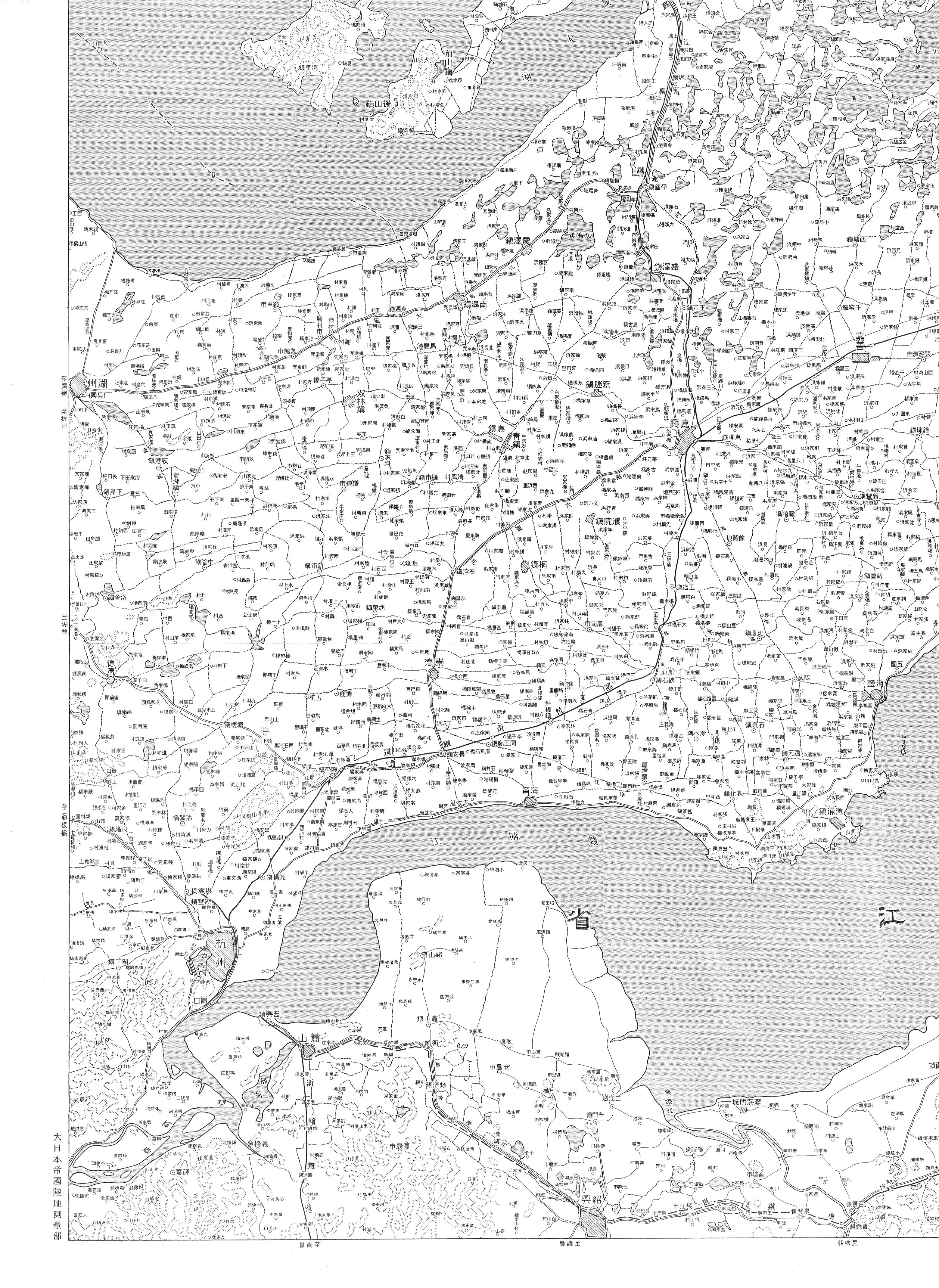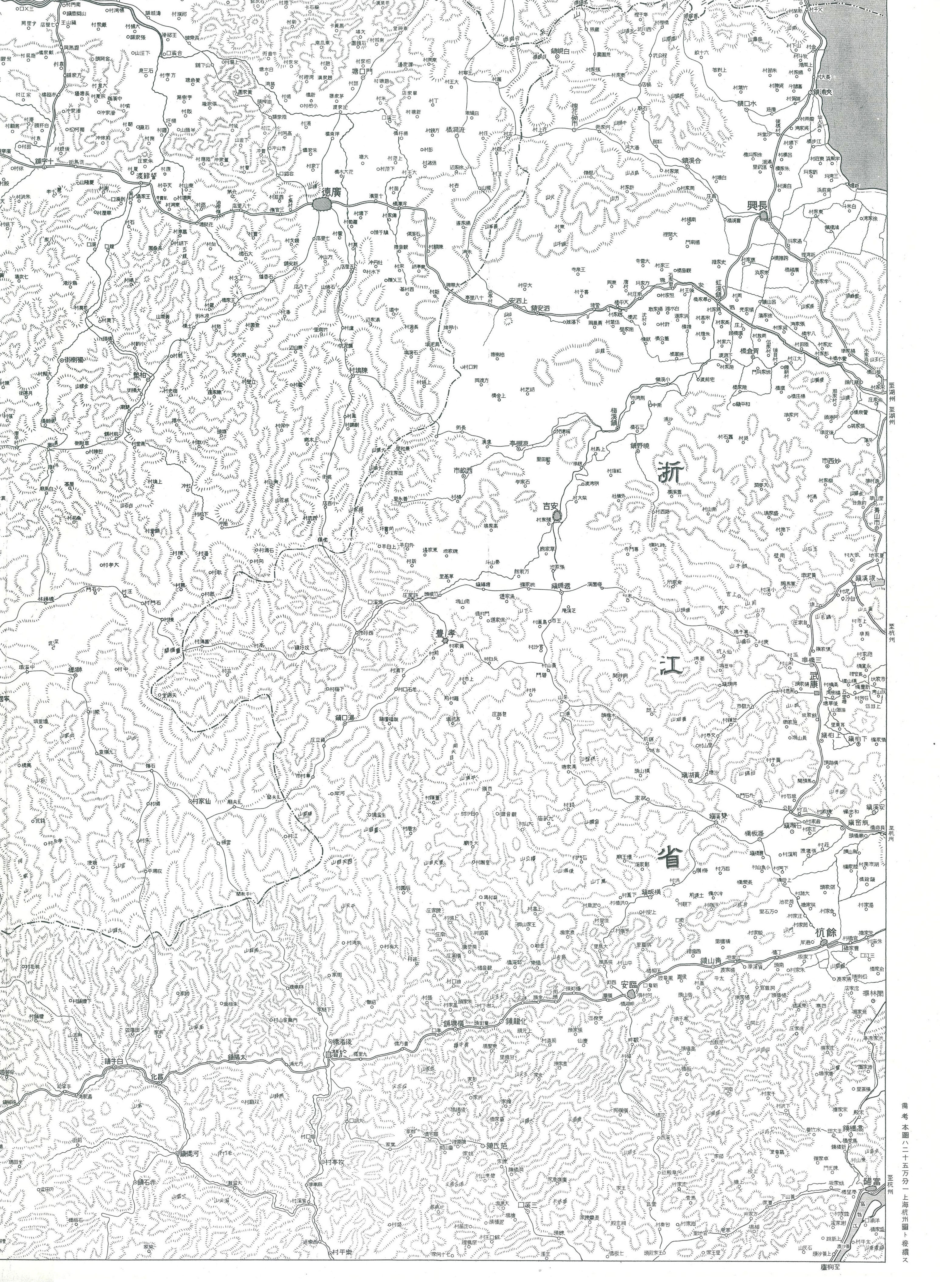 図右下に「備考 本図ハ二十五万分一上海杭州図ト接続ス」とある