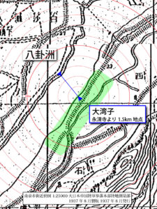 地図上で大湾子―八卦洲間の距離を測ると約500mである。