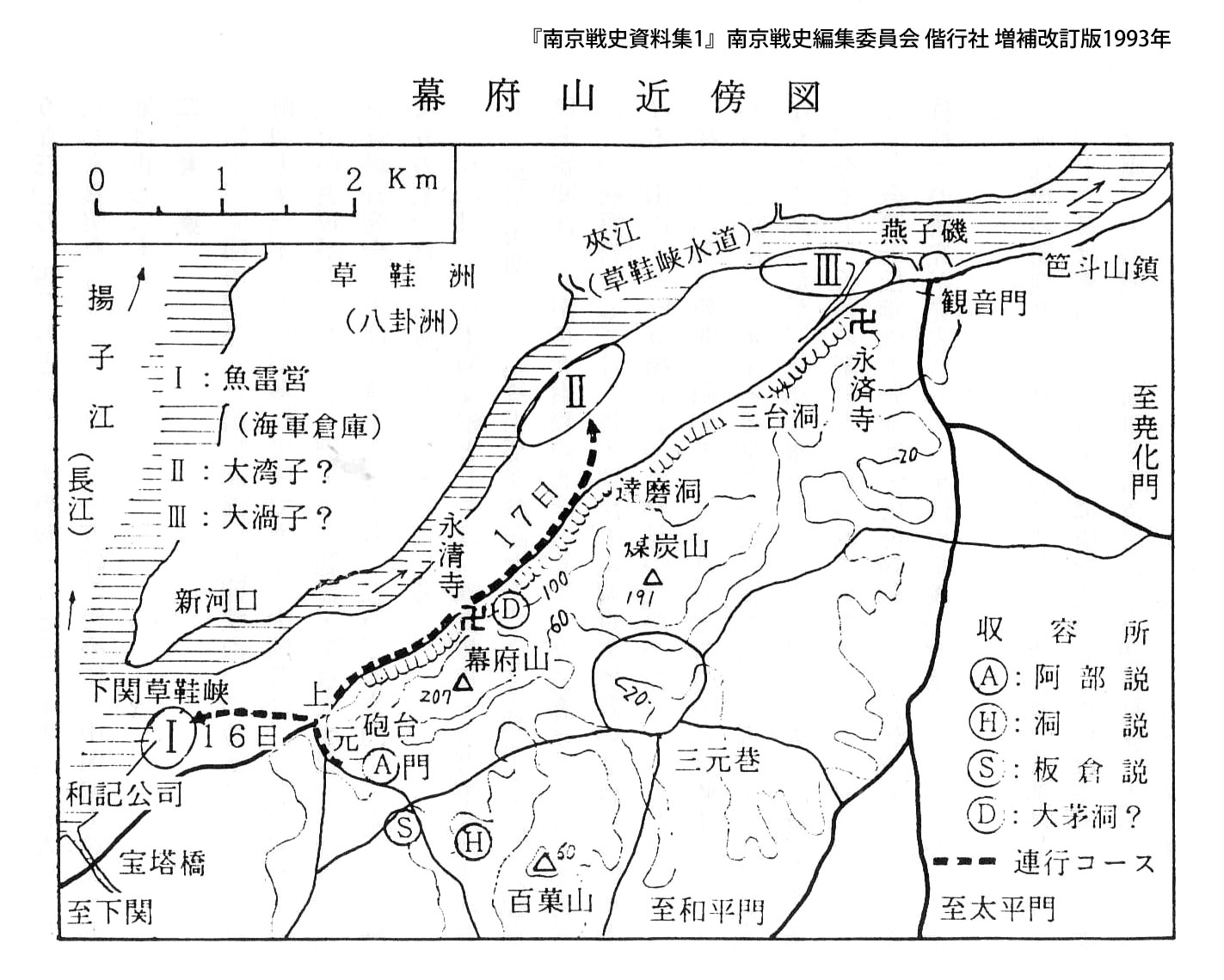 また、洞氏らは別の地図(南京附近一万分一地形図)をもって永清寺の本当の位置を特定した。それは、上元門―観音門道の上元門から約1200mほど進んだ幕府山側に位置していた。