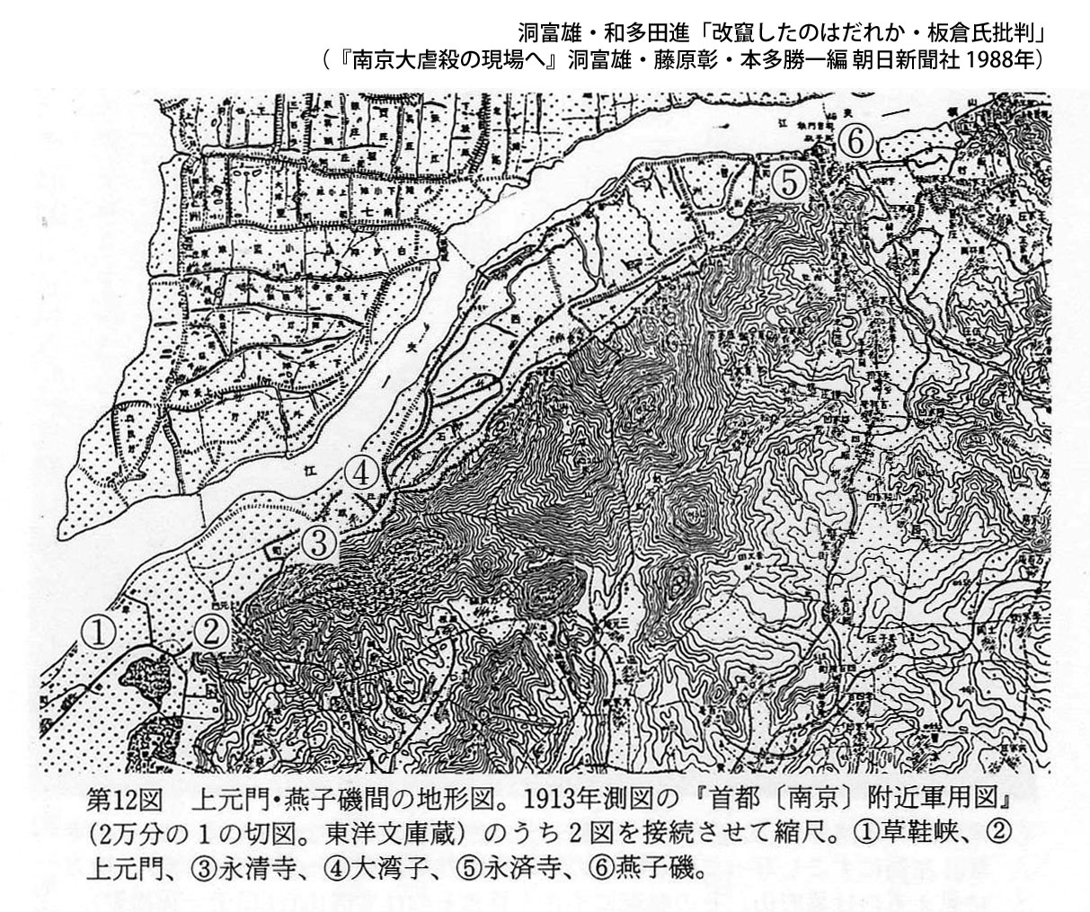 『月曜評論』1987年1月19日・2月2日では、板倉氏が作成した「南京北部」図を示して、詳細を説明している。(右図参照)